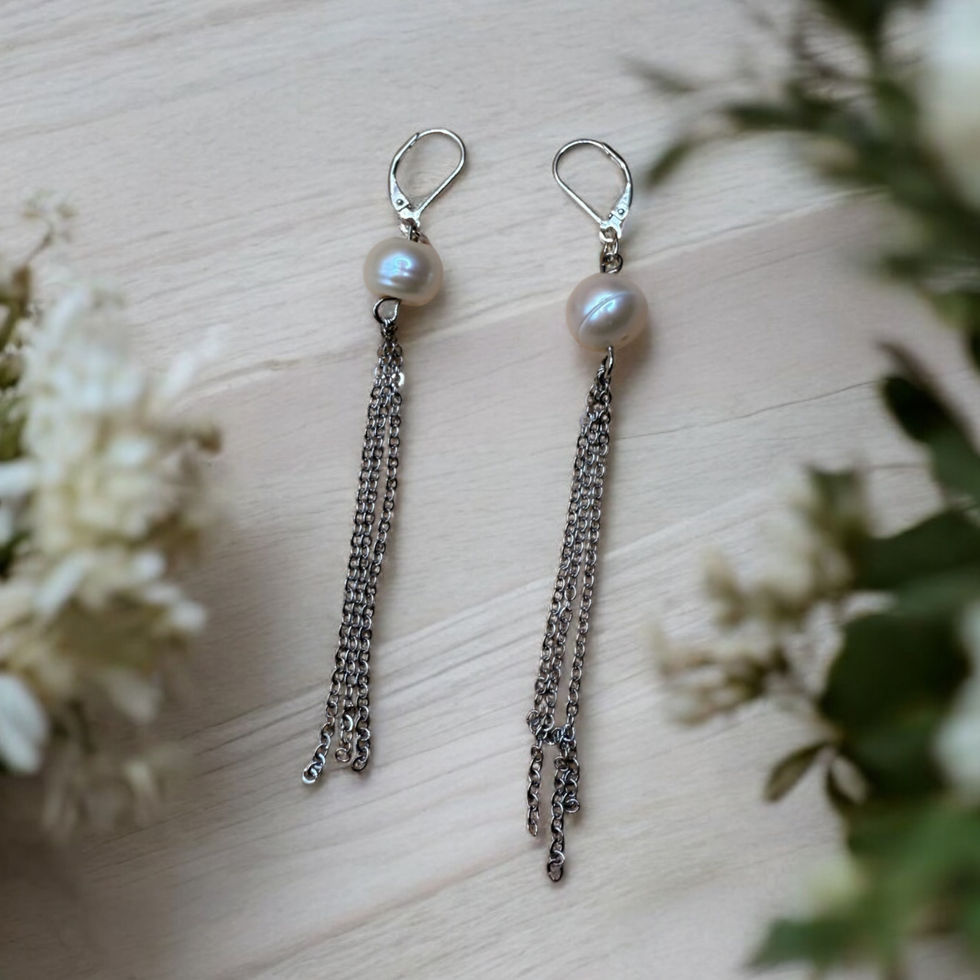 Boucles d'oreilles en argent 925 avec une perle d'eau douce .
